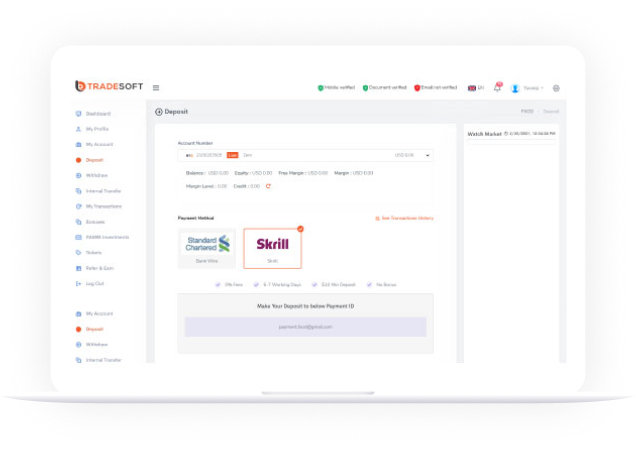 Generally, the broker relies on internal and external staff with day-to-day operations. Client registration, KYC, deposits and withdrawals are attended to by the operation staff. Thus, the system simplifies operations by assigning roles to your staff. As a result, agents in a support role will ensure client satisfaction and so on.