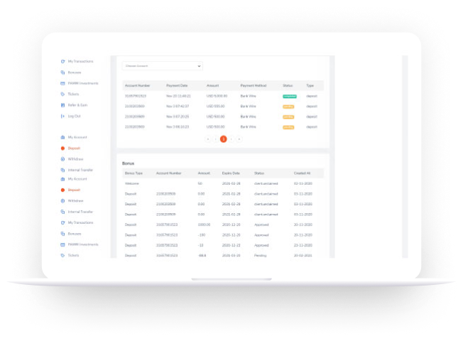 Our Brokeret CRM creates detailed reports that include personal trading, marketing and other necessary customer information. Each employee can independently set the necessary data search parameters using a wide variety of filtering options.
